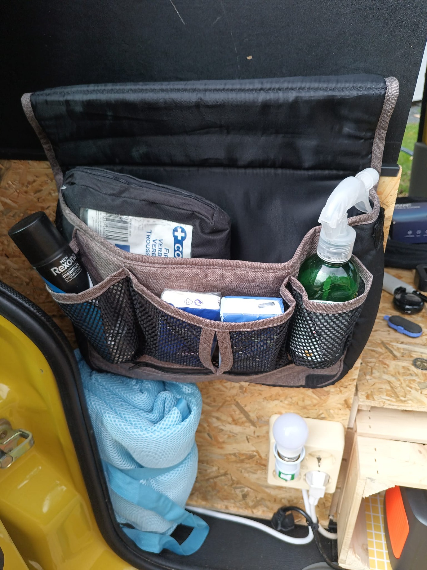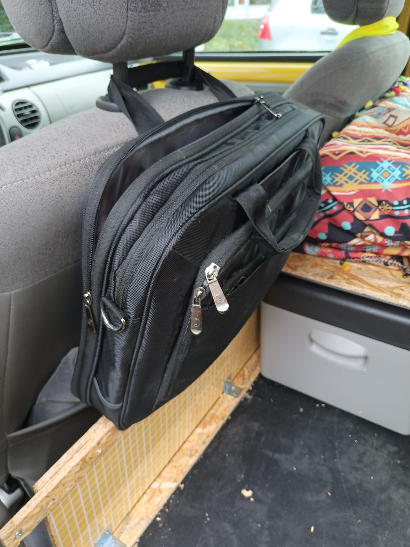 Ik had nog 2 laptoptassen in de kast liggen en dacht dat het handig zou zijn, om deze te gebruiken in de camper.