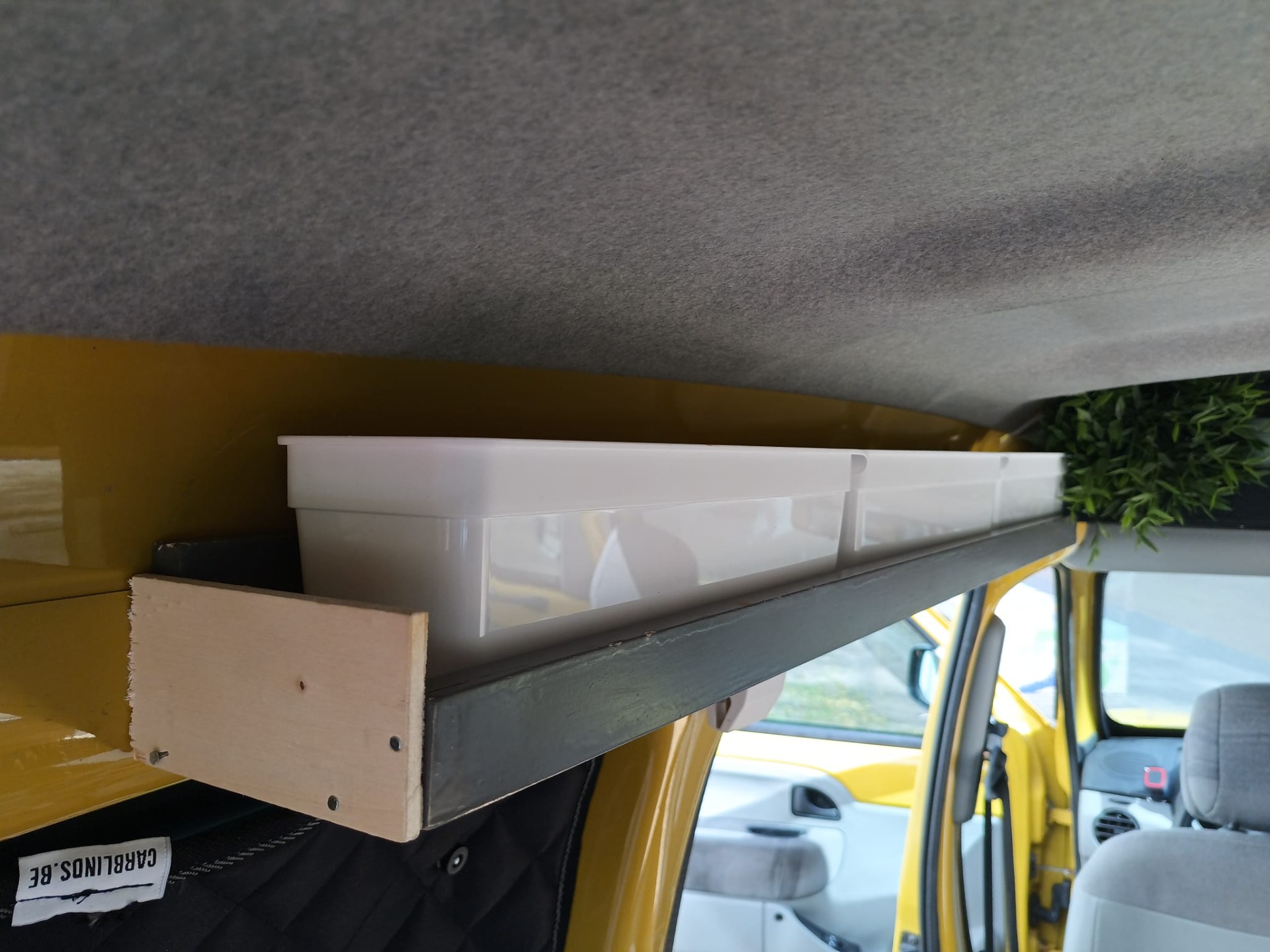 En voila, 1 aan de zijkant bij het bed/schuifdeur voor bv de EHBO kit etc.