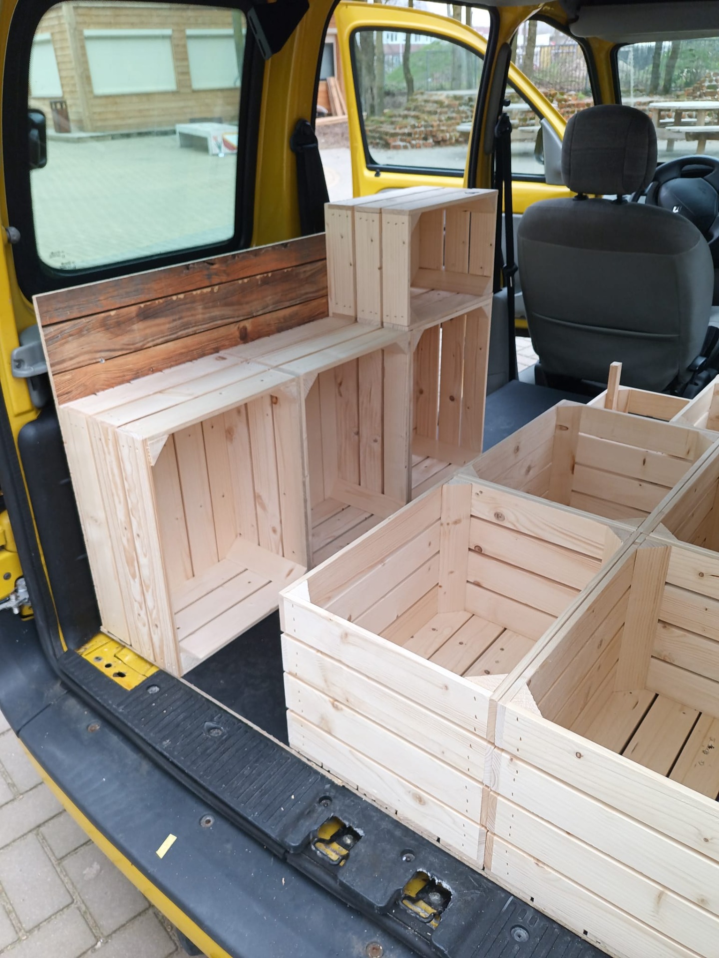 De kisten staan op hun plaats maar ga toch de kistjes voor de keuken nog stukje inkorten.